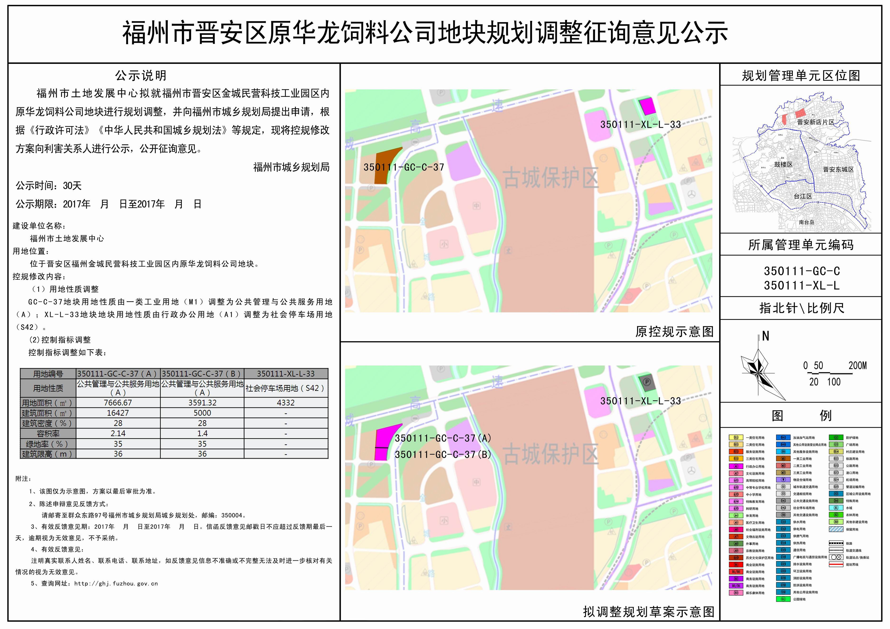 原华龙饲料公司地块位于晋安区福州金城民营科技工业园区。市土地发展中心向我局提出申请,调整原华龙饲料公司地块用地性质和规划指标,具体详见附件1。依据《福建省实施<中华人民共和国城乡规划法>办法》有关规定,将该规划调整方案进行公示,征求利害关系人的意见。详情可查阅福州市城乡规划局网站(http://ghj.fuzhou.gov.cn),公示时间为2017年3月30日至4月30日。